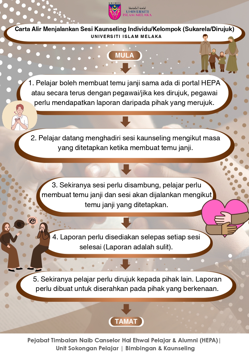- Memastikan kognitif, emosi dan tingkah laku pelajar dalam keadaan optimum supaya dapat menjalani kehidupan yang baik sepanjang pengajian di UNIMEL.