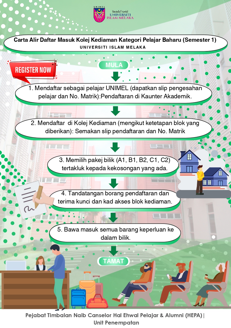 CARTA ALIR DAFTAR MASUK KOLEJ KEDIAMAN KATEGORI PELAJAR BAHARU (SEMESTER 1)